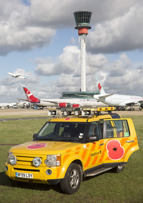 Heathrow Airport has pledged its support for The Royal British Legion by decorating its vehicles with poppies. The distinctive flowers have been placed on 200 vehicles, from safety vehicles, tugs and fire engines, to mark its support for the poppy appeal – the first time a charity image has been placed on Heathrow’s official vehicles.