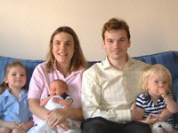 Theo was born on Monday 5th July at 12.47 weighing 8lbs 1/2oz. The picture to the left also features his wife Davina, and his two daughters Kitty (4) and Maria (2). Mother and baby are both doing well.