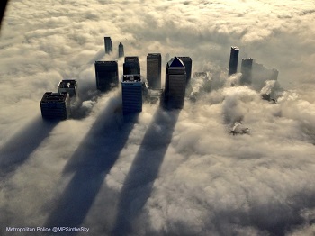 One stunning image of Canary Wharf - towering above the fog in the low afternoon sun - has been shared throughout the world after being posted on their Twitter account @MPSintheSky. Taken on an iPhone by the crew whilst travelling to a job; the snap has been embraced by their followers and new fans alike.