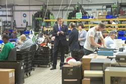 | David Cameron is shown around the factory floor | before meeting members of the staff