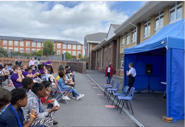 As well as visiting them in their ‘homerooms’ to find out about their favourite activities over the summer, the Commissioner spoke to the whole group to tell them more about her work as a police officer.