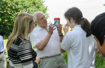 Sir David Attenborough examines minibeasts from the Holly Lodge