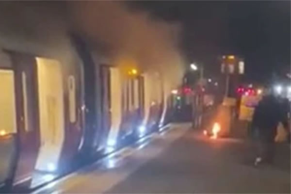 An e-scooter caused this fire on a District Line train. Picture: Twitter