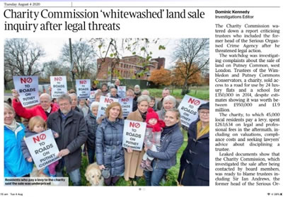 John Cameron welcomed Fleur Anderson's intervention saying:" Fleur Anderson is entirely right in stating the report is a 'whitewash" and as Putney's MP, I am sure Fleur will pursue this diligently to expose both the Commission's failure to regulate as well as the trustees' dishonesty. The current board is no better; they refuse to make public the valuations for the sale of Mill House or the common land unlawfully swapped with the Royal Wimbledon Golf Club."