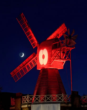 years ago. The illumination of the Windmill tower in red with a poppy lighting up its cap,