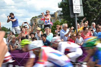 | Cav fans wait patiently at Putney Bridge for his return © Kate Roxburgh |