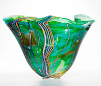 One of Europe’s pre-eminent glass artists, Peter Layton has directly influenced several of this country’s leading glassmakers and inspired many more. Layton runs the London Glassblowing Studio in Bermondsey as a collective where glassblowers can express their creativity using the studio’s kilns. Layton creates abstract works that evolve during the creative process, and is known for his strong use of colour and organic and sculptural forms.