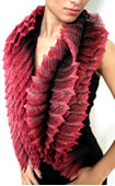 Anne Selby creates remarkable silk scarves and boas in striking shades using a Japanese pleating technique called arashi shibori. This technique transforms delicate multi-layered, hand-dyed silks into garments that take unusual and unexpected forms. Inspired by nature, Selby experiments with colour to enhance the sculptural quality of her pieces.