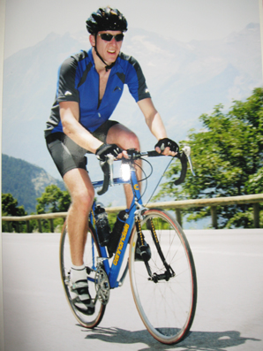 Werner pictured left climbing the 21-hairpin bend Alpe d'Huez mountain stage of the "Tour de France Challenge in 2005 Can you sponsor Werner? |