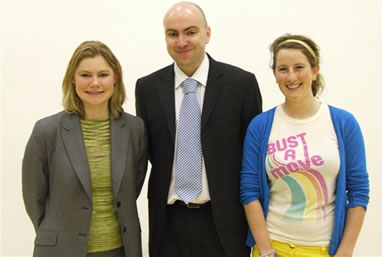 Justine Greening MP with Dr John Moore, Acting Head Teacher and Flo Ware, Deputy Head Girl and organiser of the event