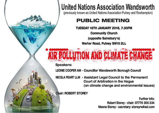 Tuesday 16 January at 7.30pm there is a free public event by United Nations Association Wandsworth (previously Putney and Roehampton) Branch at the