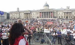 The crowd were serenaded under Nelson's Column by Billy Bragg, and were also addressed by Joanna Adams, one of the 'Darlomums', Shadow Health Secretary Andy Burnham, political writer and activist Owen Jones and Hammersmith MP Andy Slaughter. The Walking Wounded were voted the 'best made-up' demonstrators on the march.