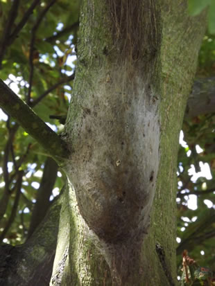 The caterpillars build white silken webbing nests in oak trees. Survey teams working on behalf of the Forestry Commission have surveyed oak trees across Wimbledon and Putney Commons to see which ones are affected. Nests are then removed.