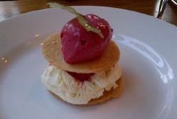 Some of the desserts seemed just too filling to eat after our first two courses - such as chocolate cake, Guinness sauce and hazelnut brittle ice cream (£7.50) - so we plumped for raspberry mille feuille, Chantilly cream, raspberry sorbet and raspberry tuille (£7.50). This was a picture on the plate and was a big enough portion for us to share. While it was not quite as amazing as other other dishes, we had no trouble finishing it off.