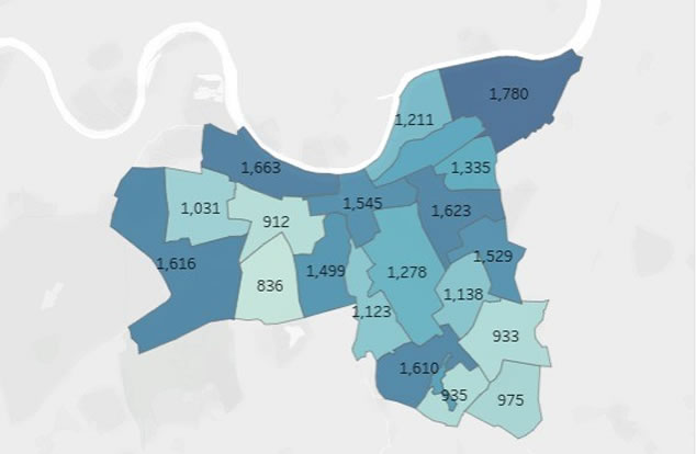 Here’s a list of the most and least dangerous wards in the borough based on the total number of crimes in the period.