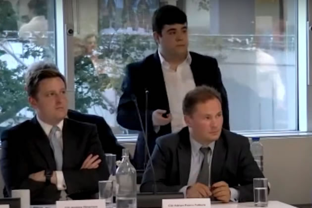 Conservative councillors look on as protestors are ejected. Picture: YouTube