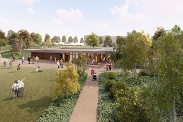 The park will include a café, youth shelter, amphitheatre, ponds, gardens, a new footbridge and areas for sports.