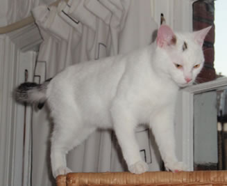 Ronnie, has been mising since the early hours of Wednesday 8th September. He is quite distincive as he has white fur on his body and a tabby, black tail.