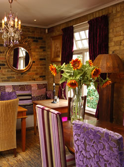 A cosy unprepossessing exterior warmly invites you into an interior that made me consider exercising squatters rights. This establishment instantly made me feel at home, just not my home. The décor exudes sumptuous eclectic shabby chic in a manner that I’ve never achieved – our house oozes mismatched shabby.