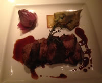 For our main courses I stayed with spring theme and opted for the lamb dish - Noce d’agnello organico con carciofi, patate e cipolla rossa, salsa al Chianti. Tender roast rump of lamb that melted in the mouth, served with artichoke served on potato with red onion, and a rich robust Chianti wine sauce. I chose a glass of the red wine that Guiseppe Turi recommended on the menu - knowing my friend would drink white there was no way we could order a bottle of each and so using Guiseppes guidelines I had a rich glass of Primitivo Salento, a rich fruity red.