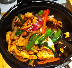 Now while the chicken dish sounded the more ordinary it was far from it and even the waiter was moved to say “yum” as the fragrant steam wafted into his face from its little black pot. And yum it was indeed. Chicken that tasted of chicken (so easily swamped by added sauces), crisp peppers, slices of onion and I think I could separate out at least three of the famous “five spices” in a delicious black bean sauce.