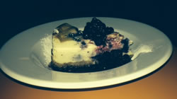 The cheesecake was firm-textured, with the sweetness pleasantly offset by the sharp taste of the whole, baked, fresh blueberries.
