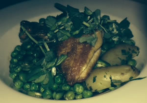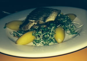 The sea bass fillets were tender but had a pleasantly crispy skin. Taken together the plate was an attractive mixture of textures and colours.