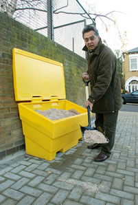 Each bin contains one tonne of grit or salt for residents to use. These are repeatedly refilled during icy spells. They have been placed in areas most badly affected by icy weather like hilly parts of the borough and also near to schools, hospitals and old people’s homes.