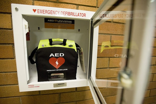 A defibrillator is an easy-to-use, portable device that guides cardiopulmonary resuscitation (CPR), assesses heart rhythms and can deliver a controlled electric shock to the chest safely. It tries to get the heart to beat normally again when someone has had a cardiac arrest, which can be hugely important while you wait for emergency services to arrive. If a defibrillator is used within three to five minutes of a cardiac arrest, the chance of survival increases from 6% up to 50-70%.