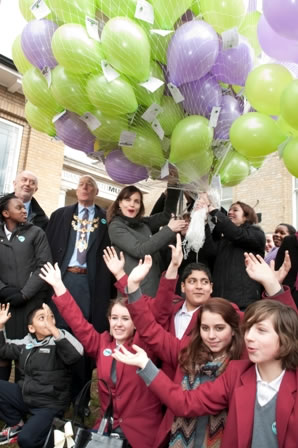 The balloons were released by children from local day and community centres, West Hill Primary, Garret Park and St Cecelia’s schools. Also releasing balloons into the sky were actress Elizabeth McGovern, star of Downton Abbey and Once Upon a Time in America, Jean Gross, the government’s communication champion, David Astley, St George’s Healthcare NHS Trust chief executive, and Mayor of Wandsworth Cllr Piers Conolly McAusland.