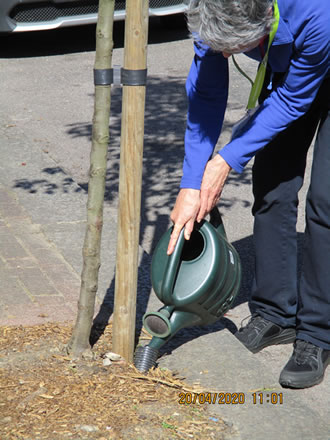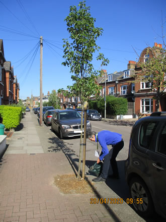 "The weather is lovely but there’s been little rain of late and plenty of drying winds. Young trees just planted in the 2019/2020 season need all the water they can get. If there’s a youngster near you use a watering can or some such (about 2 gallons or 10 litres) to pour water down the black water pipe at the base of the tree and also water the surface area. Trees which are several years older can also need water, drooping wilting leaves are an obvious sign and would appreciate water too" says Mary-Claire Mason Putney resident, tree lover and Wandsworth Tree Warden
